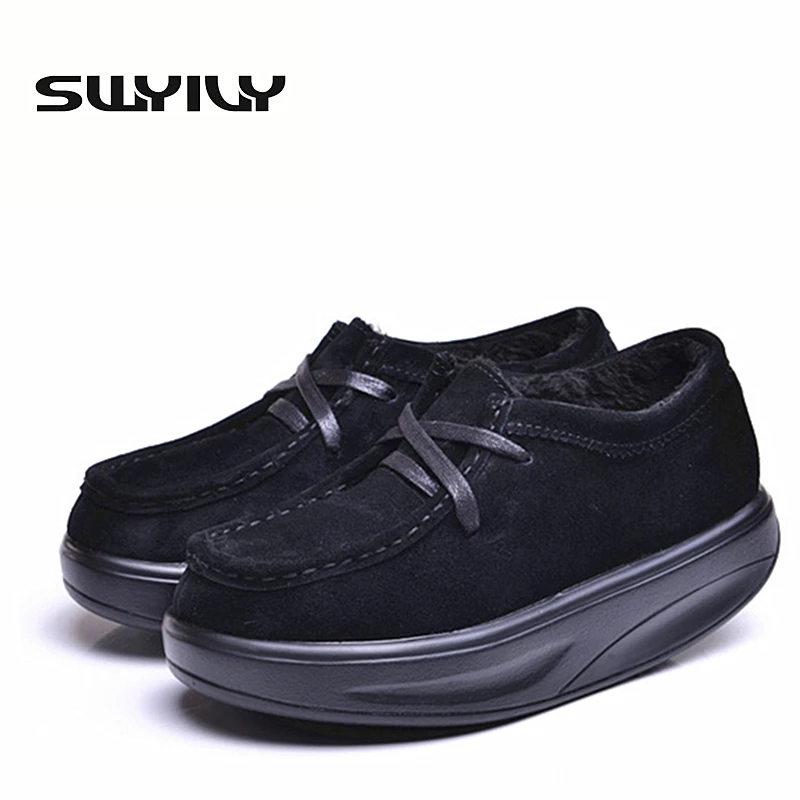 SWYIVY Women Toning Shoes Genuine Leather Thick-sole Swing Shoes 2018 Large Size42 Breathable Lace-up Female Slimming ShoesBuy Now On Aliexpress
