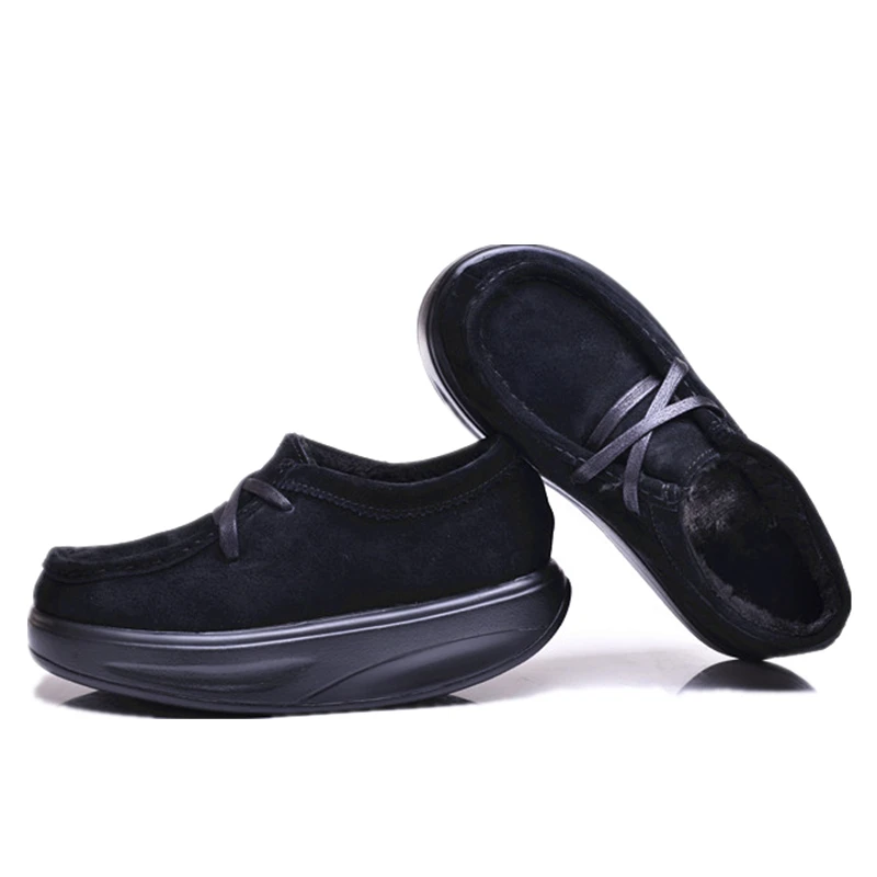 New Winter Genuine Leather 4.5cm Warm Women Swing Shoes Thick Soles Wedge Toning Shoes Lacing European Style Women Sneakers