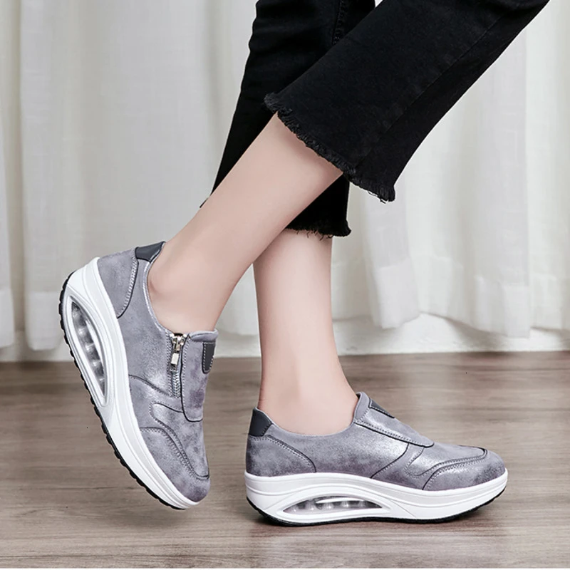 Platform Sneakers Waterproof Thick Bottom Height Increasing Casual Women Rocking Shoes Shock Absorber Outdoor Rocking Shoes