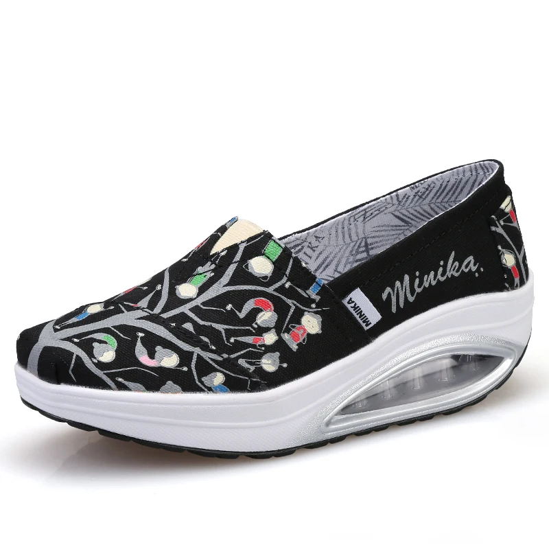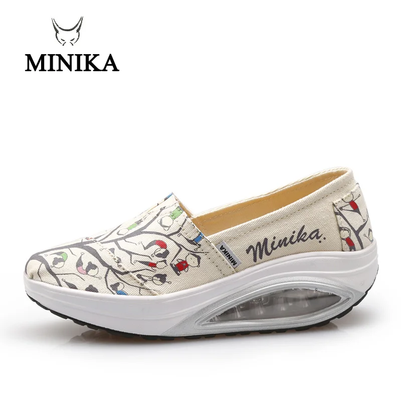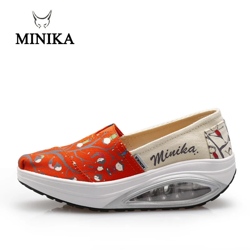 Minika Women Girls Canvas Platform Shoes Printing Slip On Swing Shoes Fitness Height Increasing Toning Walking ShoesBuy Now On Aliexpress