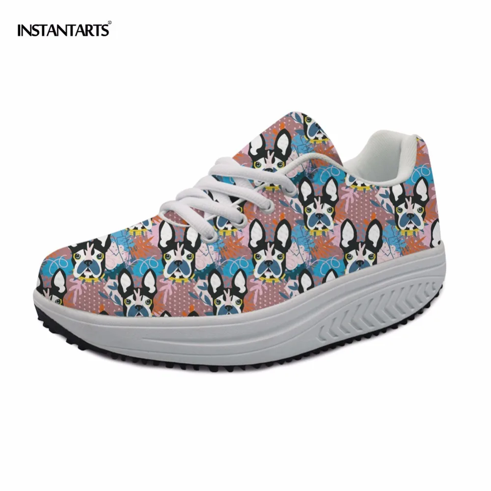 INSTANTARTS Abstract Pup Terrier Printed Sneakers Women Body Shaping Fitness Shoes Outdoor Platform Wedge Slimming Toning Shoes