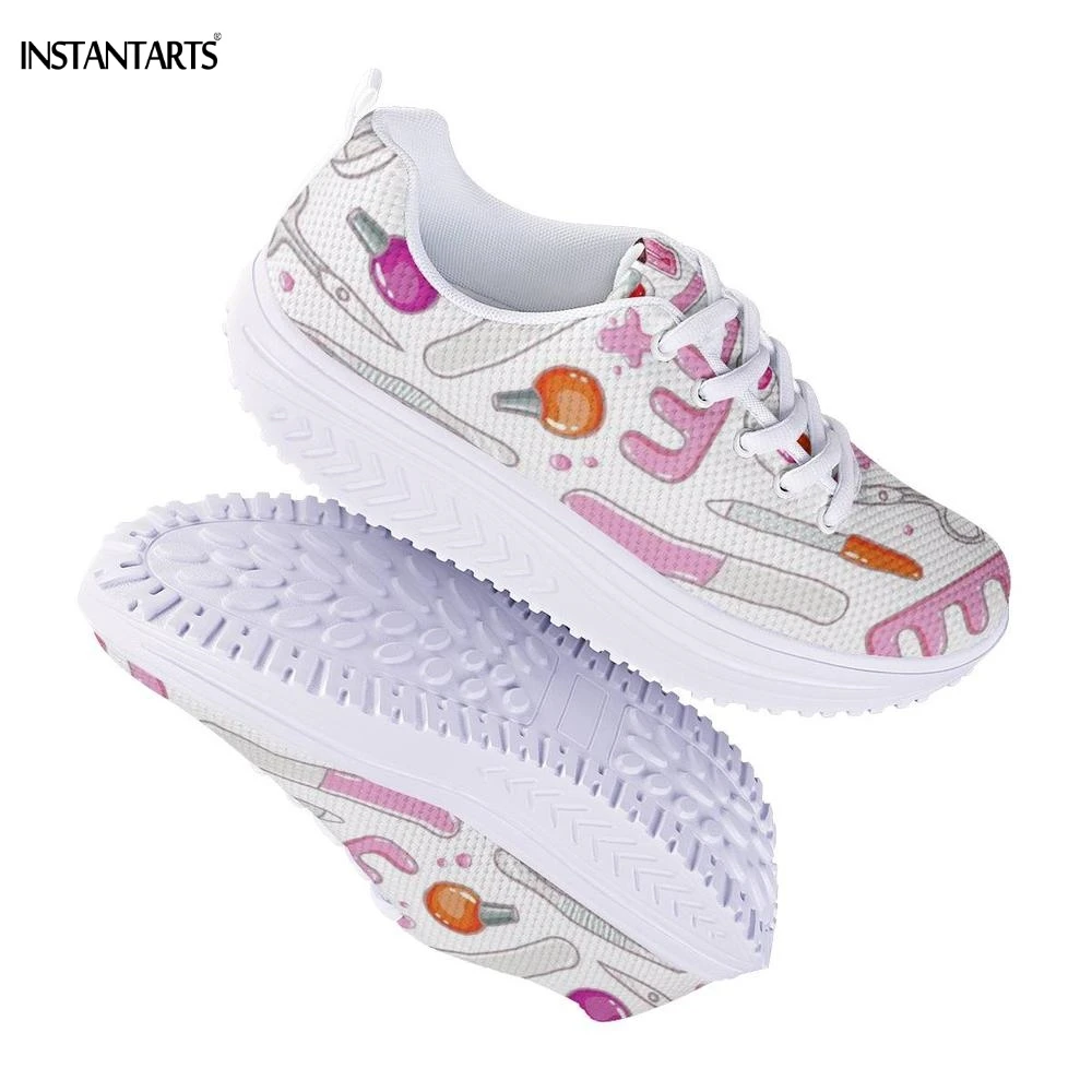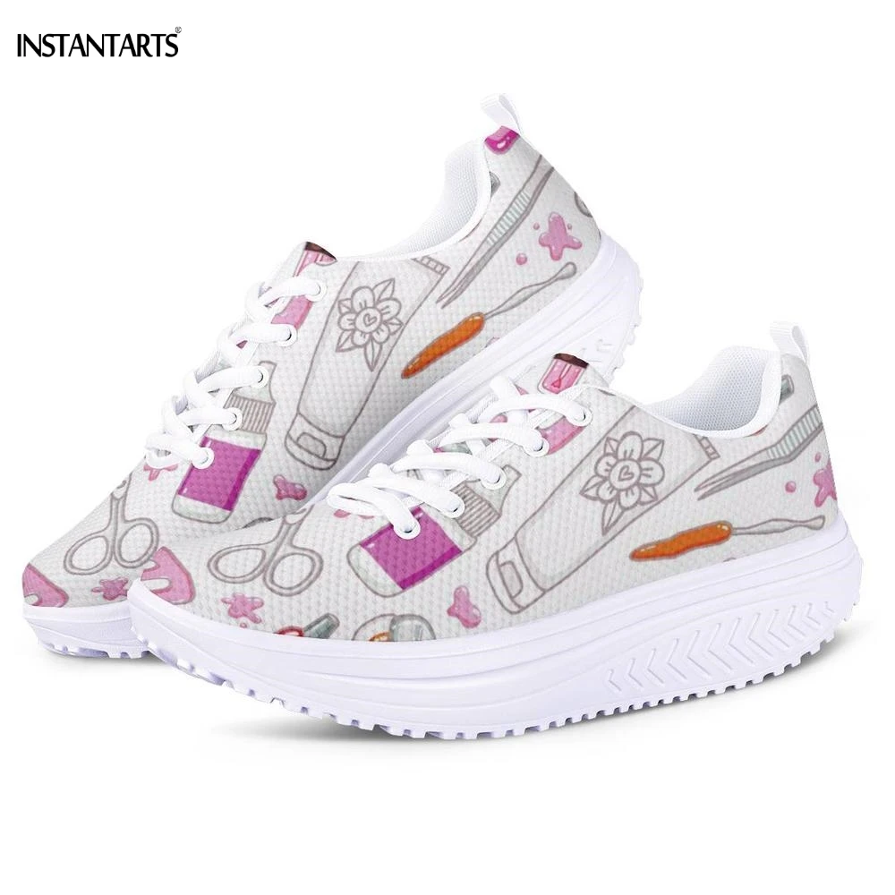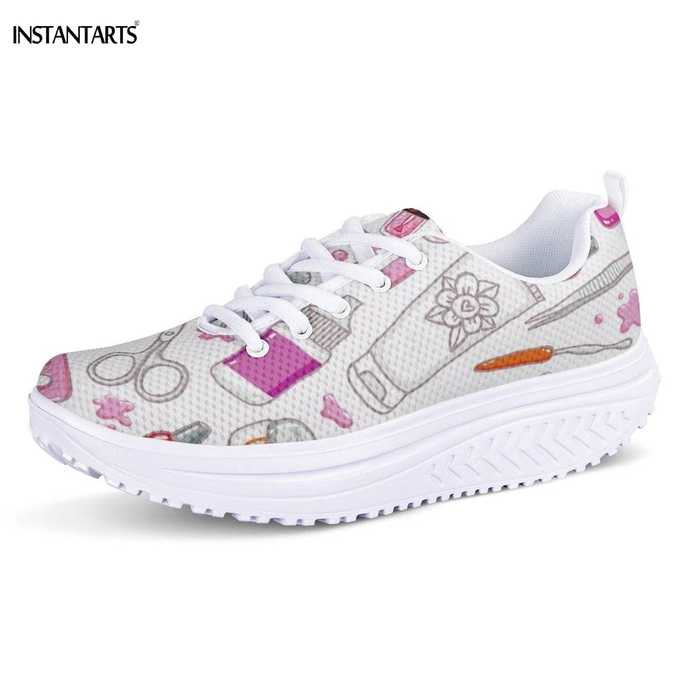 INSTANTARTS Proud Nail Tech Makeup Tools Printing White Woman Swing Fitness Shoes Workout Platform Wedge Sneakers Slimming Shoes