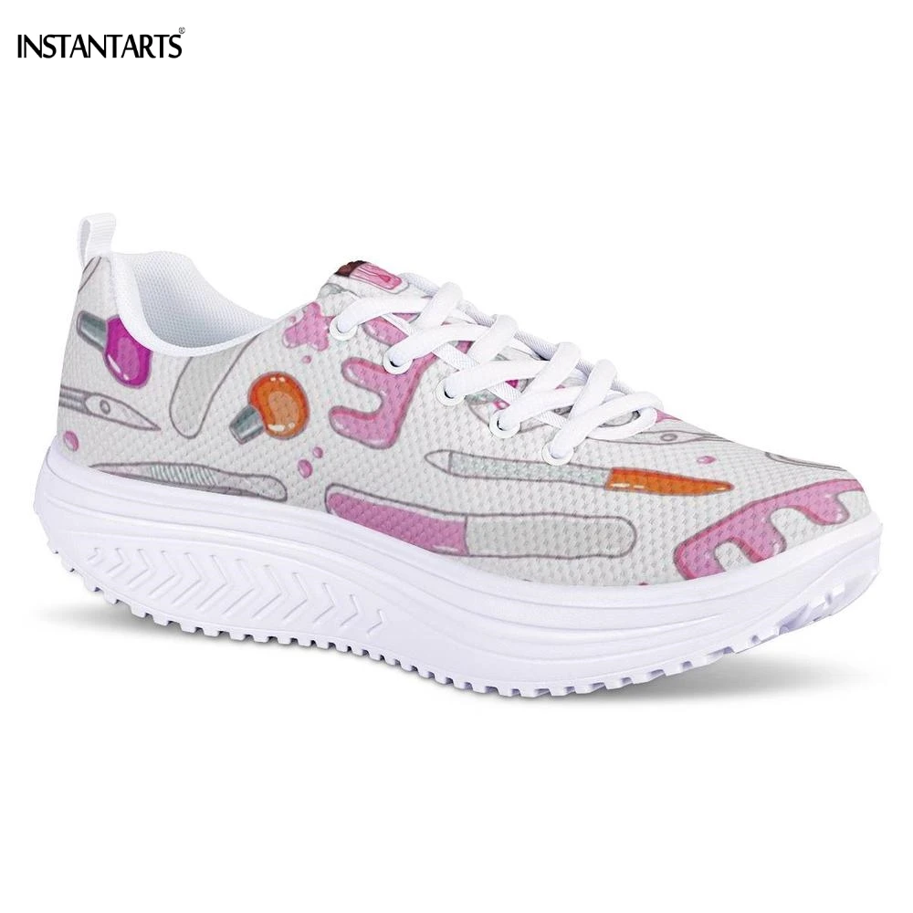 Best Price Comparison With INSTANTARTS Proud Nail Tech Makeup Tools Printing White Woman Swing Fitness Shoes Workout Platform Wedge Sneakers Slimming Shoes