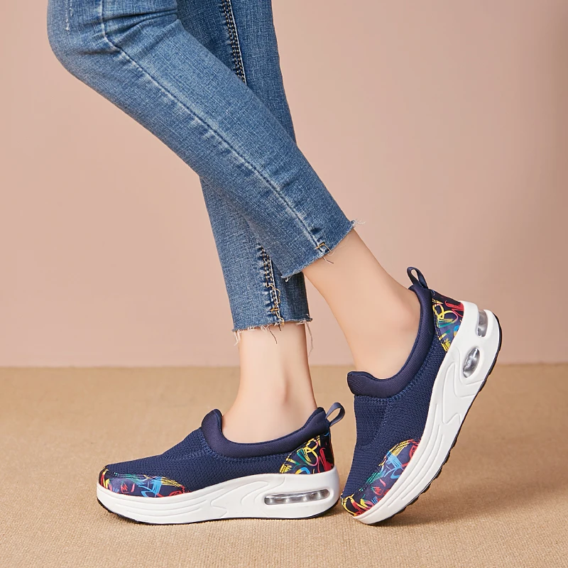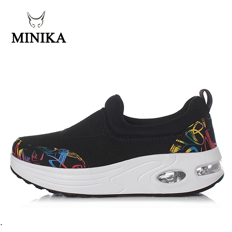 Minika Slimming Shoes Women Summer Breathable Slip On Sport Shoes Female Fitness Swing Platform Wedge Shoes Lady Walking Sneaker