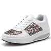Women Toning Shoes Flat Platform Gold White Women Thick-sole Swing Shoes Lace-up Female Slimming Sneakers Comfortable Big Size