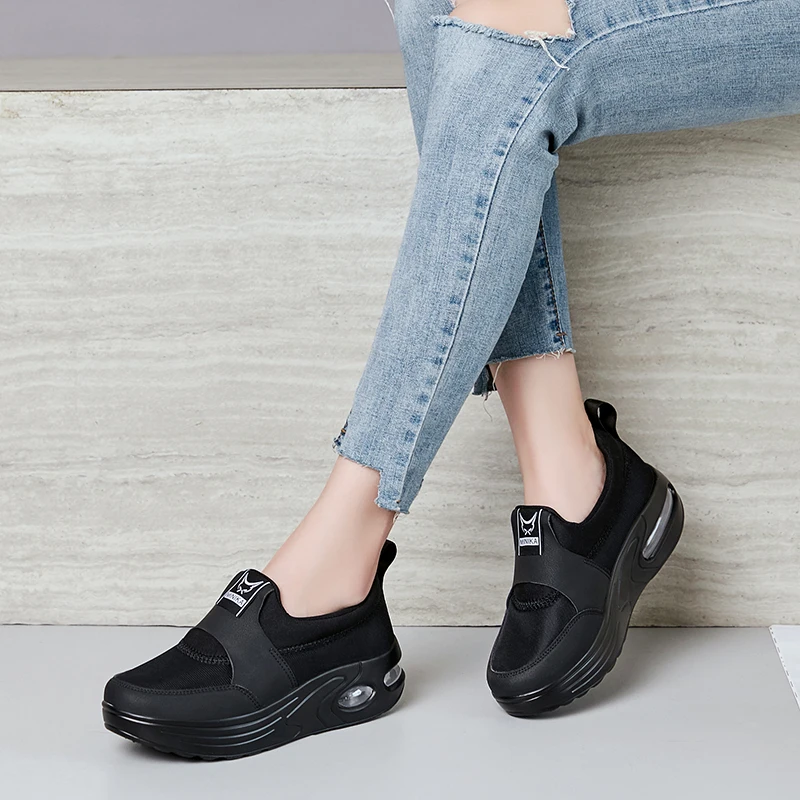 Women Breathable Sneakers Spring Female Slim Wedges Toning Shoes Women Height Increasing Slimming Swing Shoes