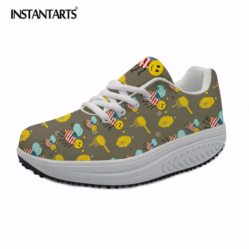 INSTANTARTS Women Fitness Toning Shoes Lightweight Sport Platform Wedge Slimming Shoes Summer Breathable Mesh Shaping Swing Shoe