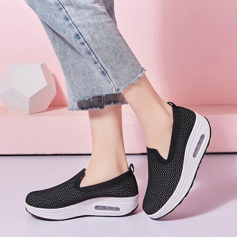 Women's Casual Shoes Platforms Slip On Breathable Mesh Cushioning Walking Toning Shoes WedgesBuy Now On Aliexpress