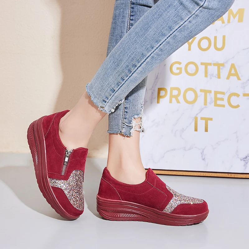 Sneakers Minceur Women Air Cushion Outdoor Sport Shoes Zipper Women's Fitness Sneakers Rhinestone Vamp Soft Winter Shake Shoe