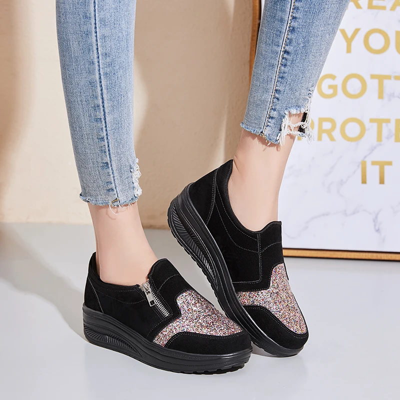 Sneakers Minceur Women Air Cushion Outdoor Sport Shoes Zipper Women's Fitness Sneakers Rhinestone Vamp Soft Winter Shake ShoeBuy Now On Aliexpress
