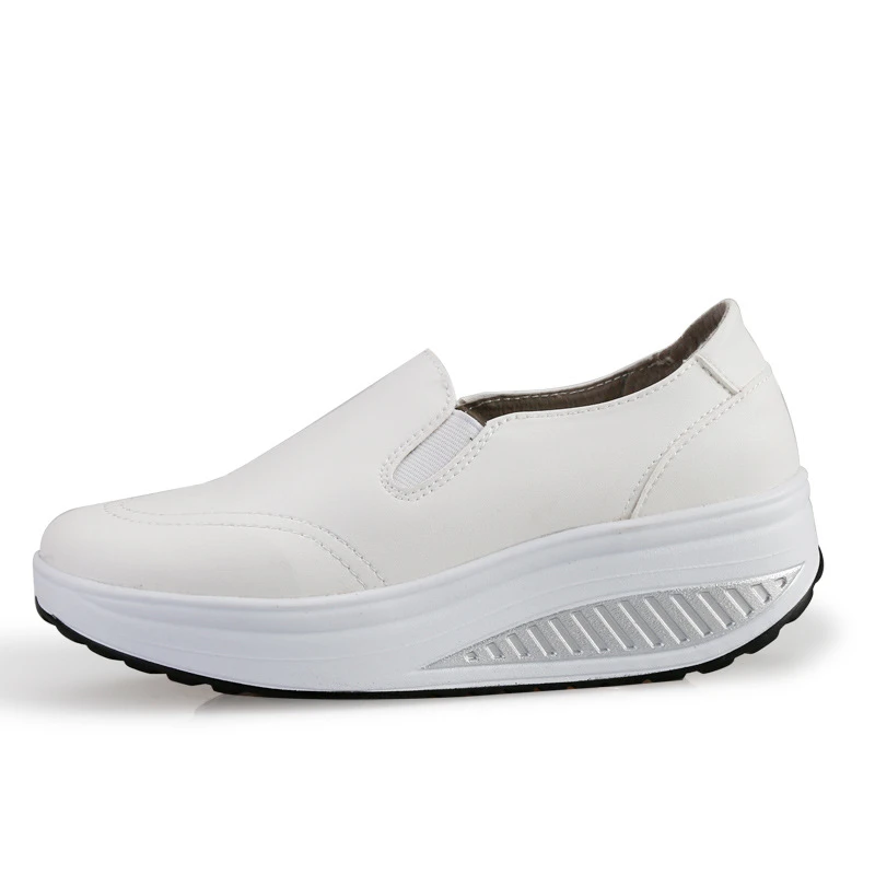 Autumn PU Women Toning Shoes White Swing Shoes Thick Soles Height Increasing Platform Wedge Slimming Shoes Slip-on Lazy Shoes