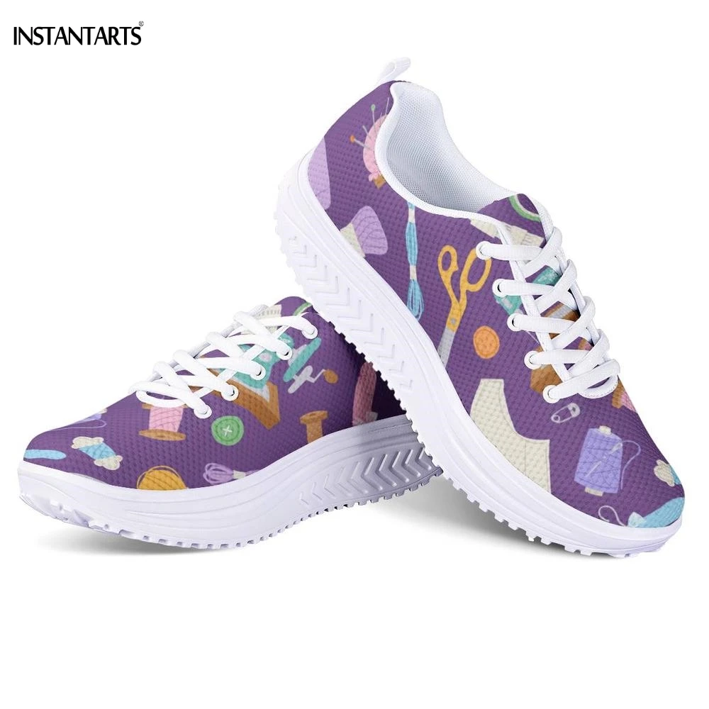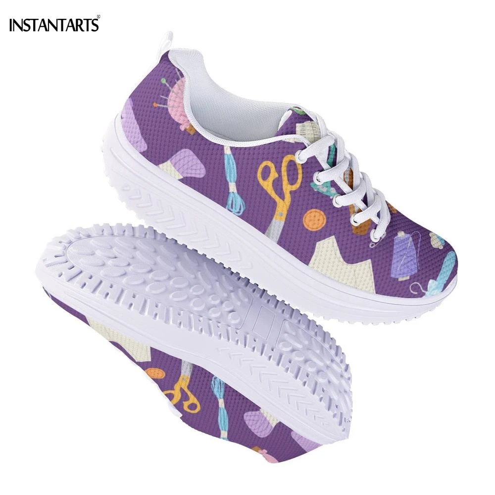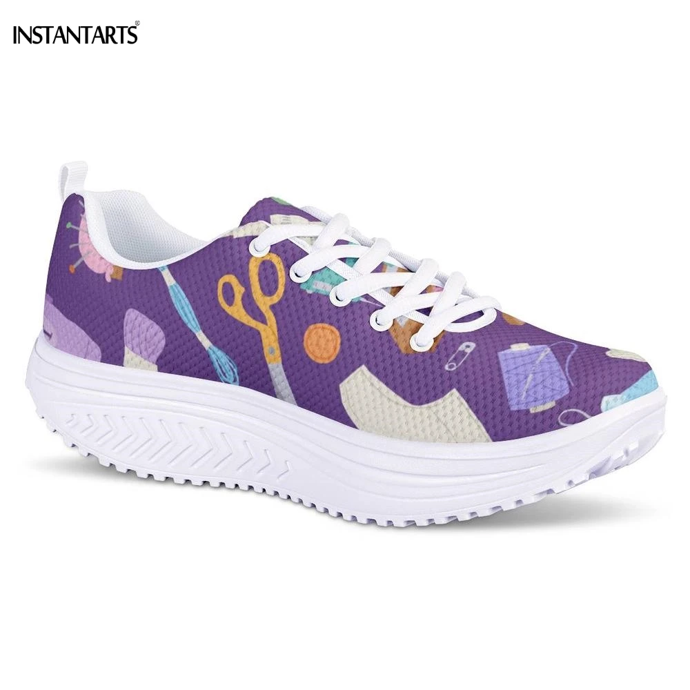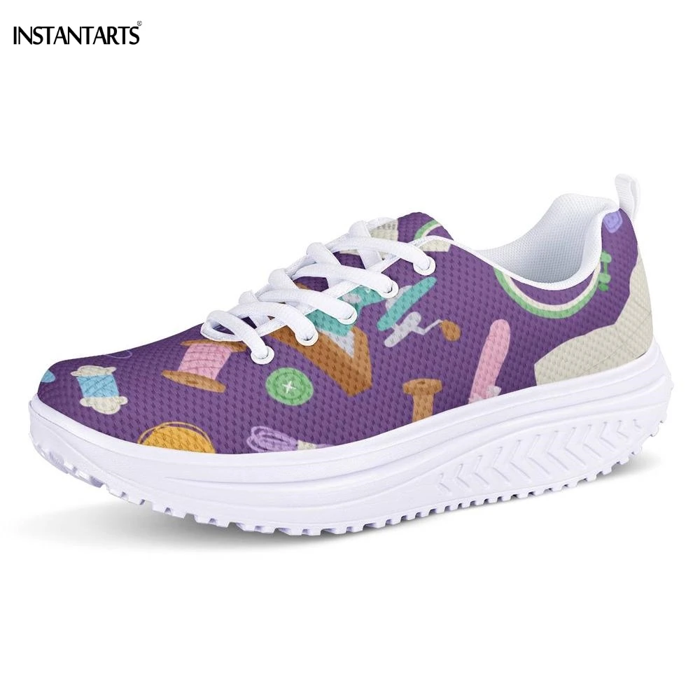 INSTANTARTS Sewing Printing Purple Fitness Swing Shoes Outdoor Sports Shaping Shoes Lady Breath Platform Wedge Sneakers Slimming