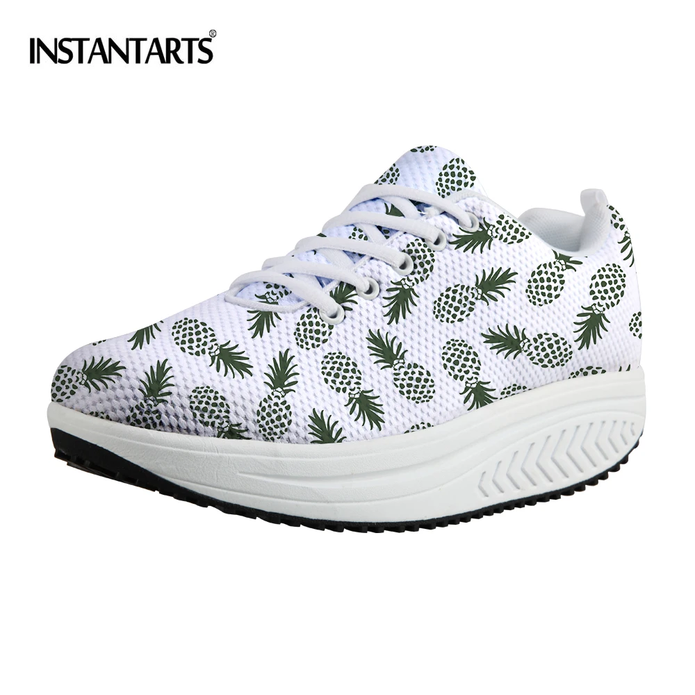 INSTANTARTS Women Swing Toning Shoes Pineapple Prints Fitness Shoes for Woman Breathable Platform Ladies Sport Slimming Sneakers
