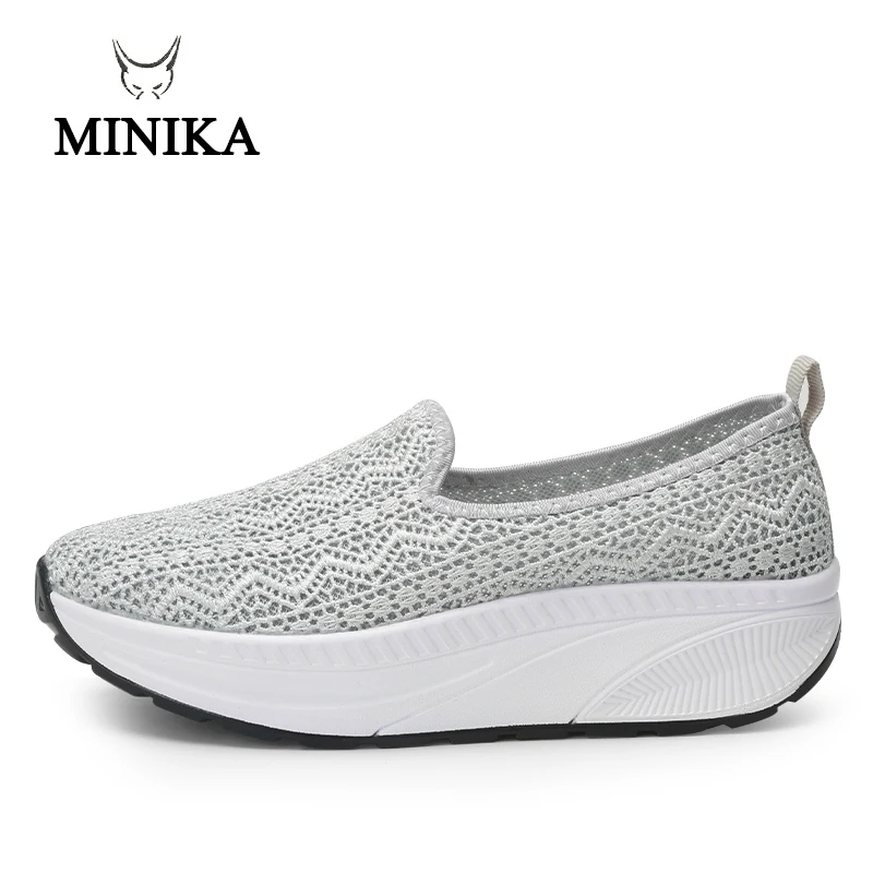 Minika Summer women high quality Lace women sneakers platform heel 5 cm Toning shoes for women deportes y fitnes sapato feminino