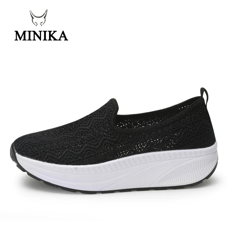 Minika Summer 2019 New Arrival Slip On Loafers Shoes Women Girls Air Swing Shoes Height Increasing Slimming Walking Toning shoes
