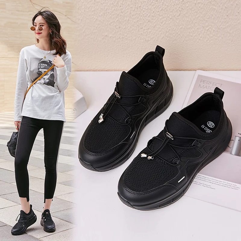 Outdoor Fitness Shoes Sneakers Women Soft Thick Bottom Women's Sport Shoes Breathable Round Toe Student Shoe Mother Health Shoes