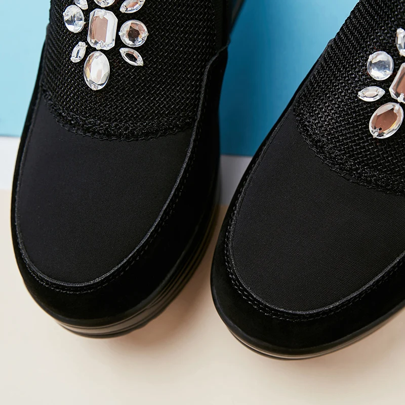Women Shake Sneakers Shoes Thick Bottom Slip On Breathable Lace Mesh Swing Shoes Chaussure Demme Black Shoes For Women Jogging