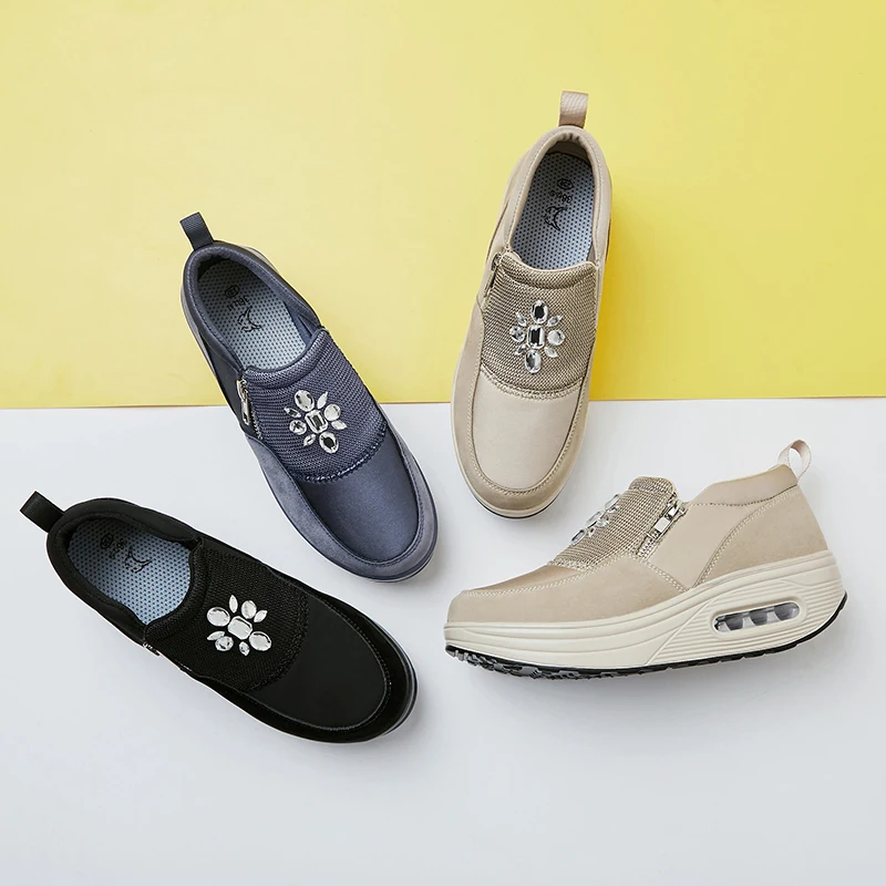 Air Cushion Shake Shoes Female Shoes Zipper Slip On Sneaker Outdoor Silver Deportivas De Mujer Sport Shoe Zapatillas Shape Ups