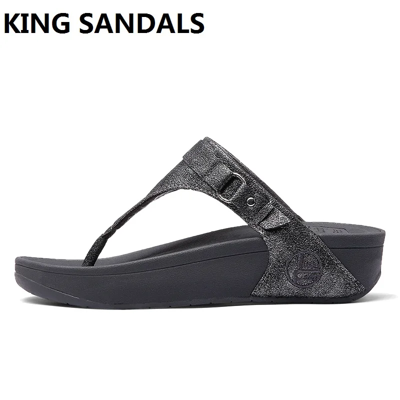 2018 Summer Sneaker Ladies Body shaping FlipFlops Cork Leather Thick Wedge Women's Slippers Beach Sandalias De Verano Para Mujer