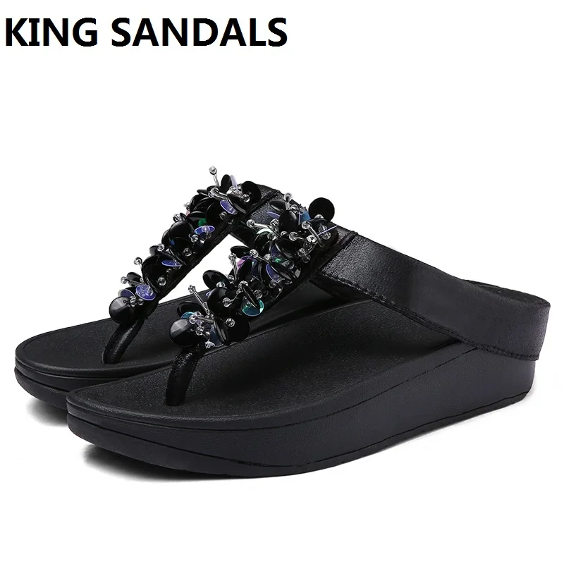 Best Price Comparison With 2018 Summer Sneaker Ladies Body shaping FlipFlops Cork Leather Thick Wedge Women's Slippers Beach Sandalias De Verano Para Mujer