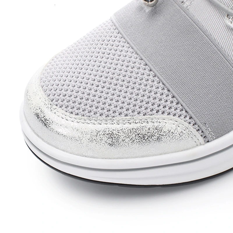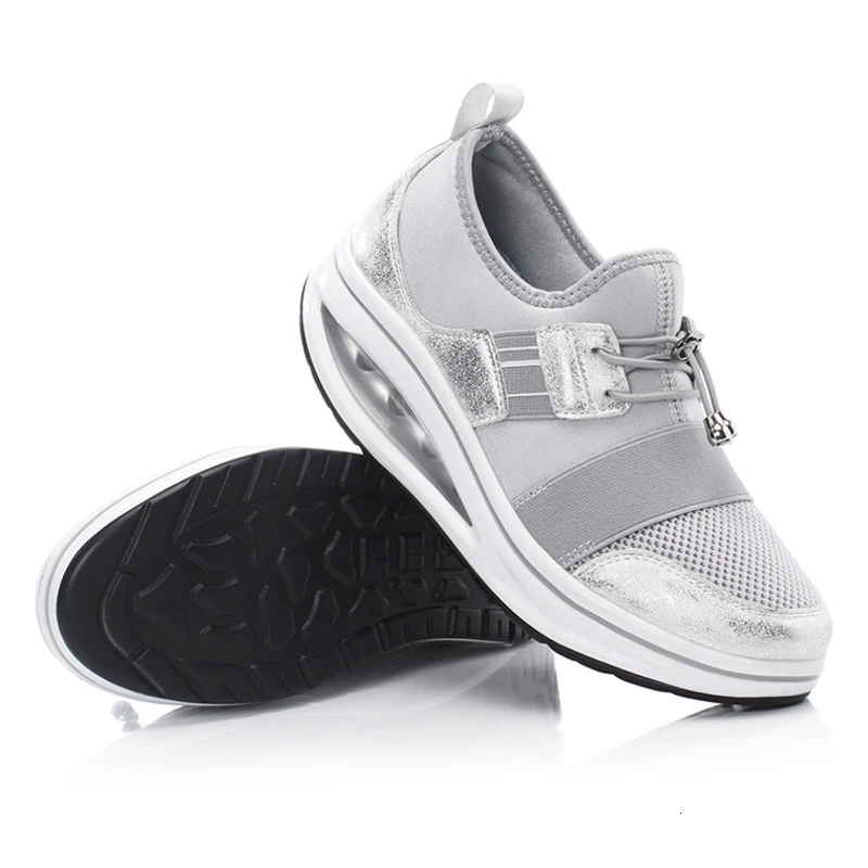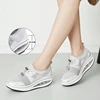 Air Sole Women Platform Shoes Height Increasing 4.5CM Wedge Sneakers Mesh Toning Shoes Lady Slip On Comfort Silver Jumping Shoes
