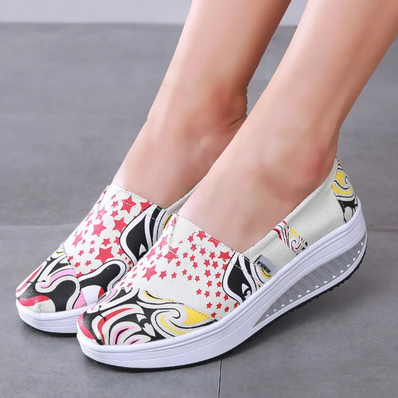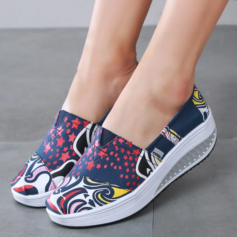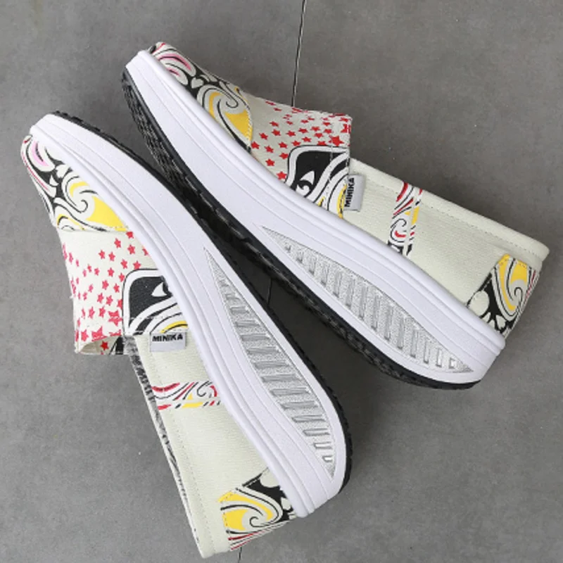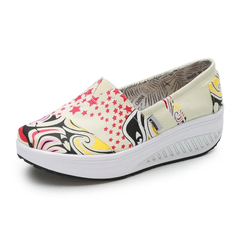 Canvas Breathable Women Toning Shoes Wedges Height Increased Loss Weight Swing Shoes Low Wedges Massage Shoes AA11011