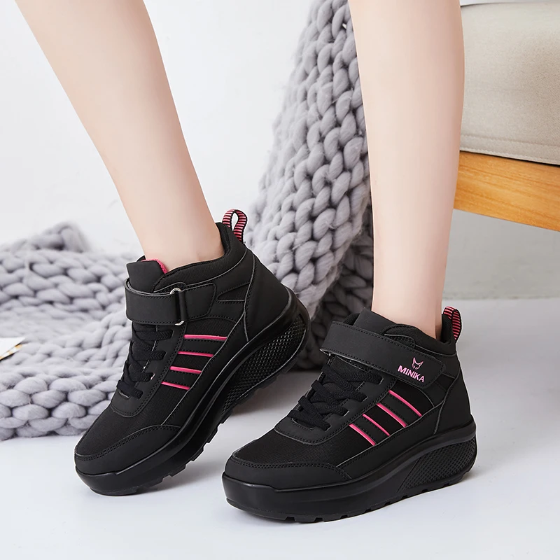 Women Toning Wedge Flat Platform Shoes Outdoor Fur Lady Walking Sneakers Body Shaping Fitness Female Slimming Swing Sports Shoes