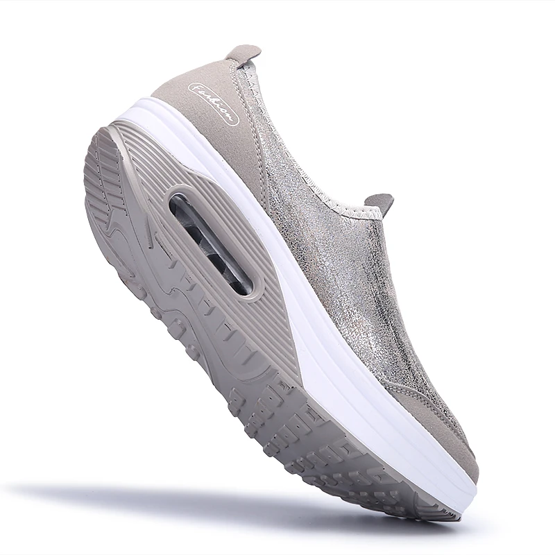 Air Cushion Shake Shoes Female Shoes Zipper Slip On Sneaker Outdoor Silver Deportivas De Mujer Sport Shoe Zapatillas Shape Ups