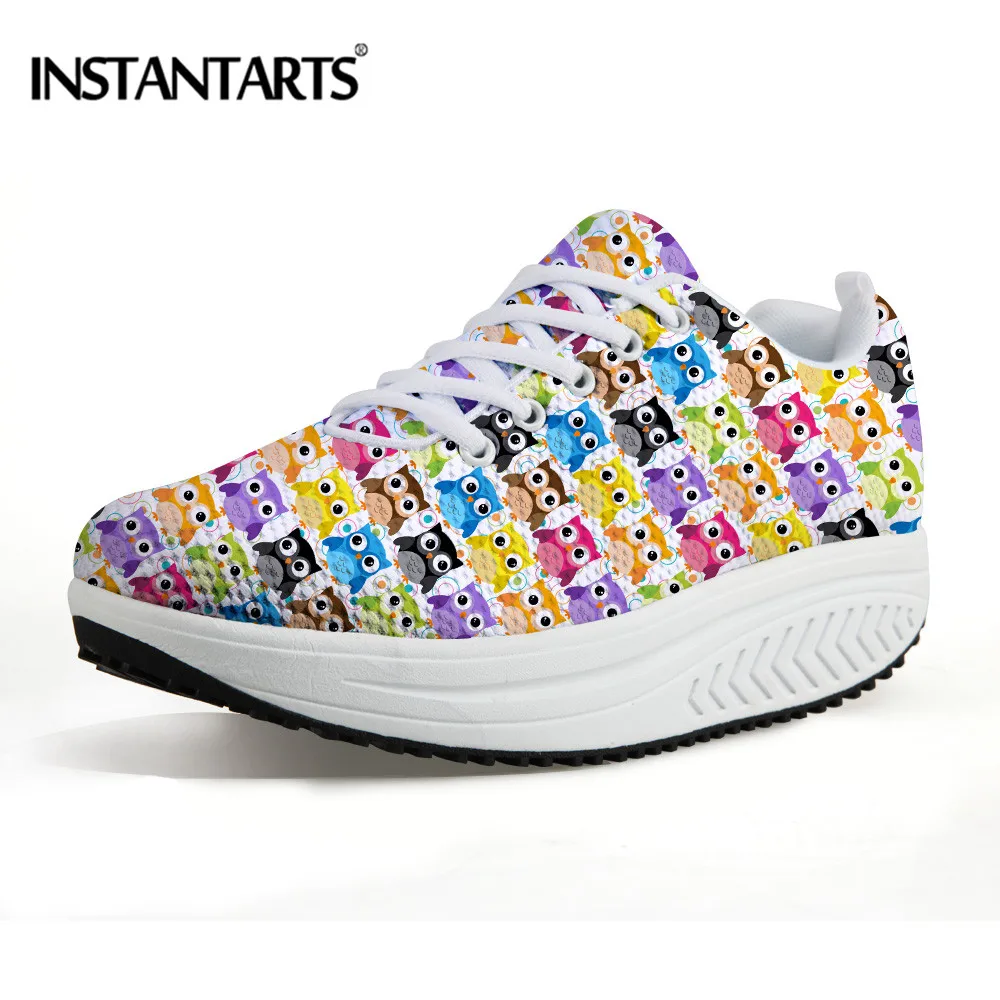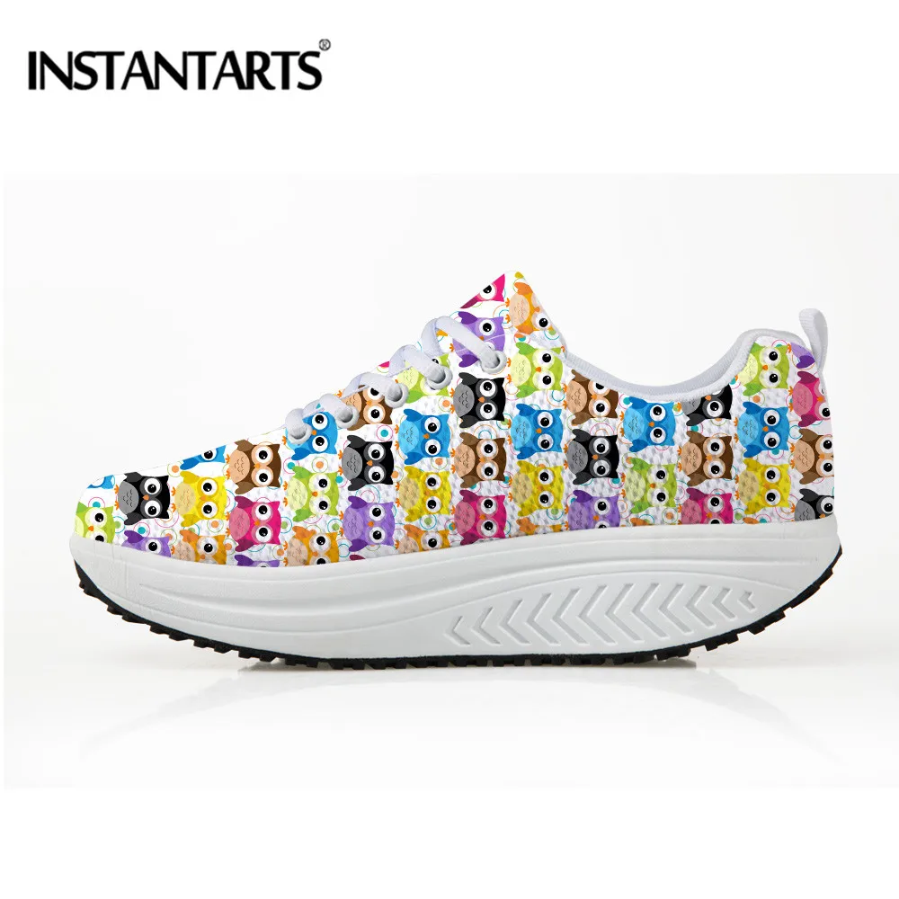 INSTANTARTS Height Inreasing Women Fitness Shoes Cute Animal Owl Platform Slimming Shoes Ladies Sports Wedges Health Swing Shoes