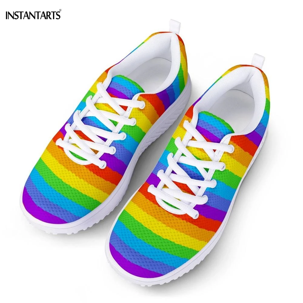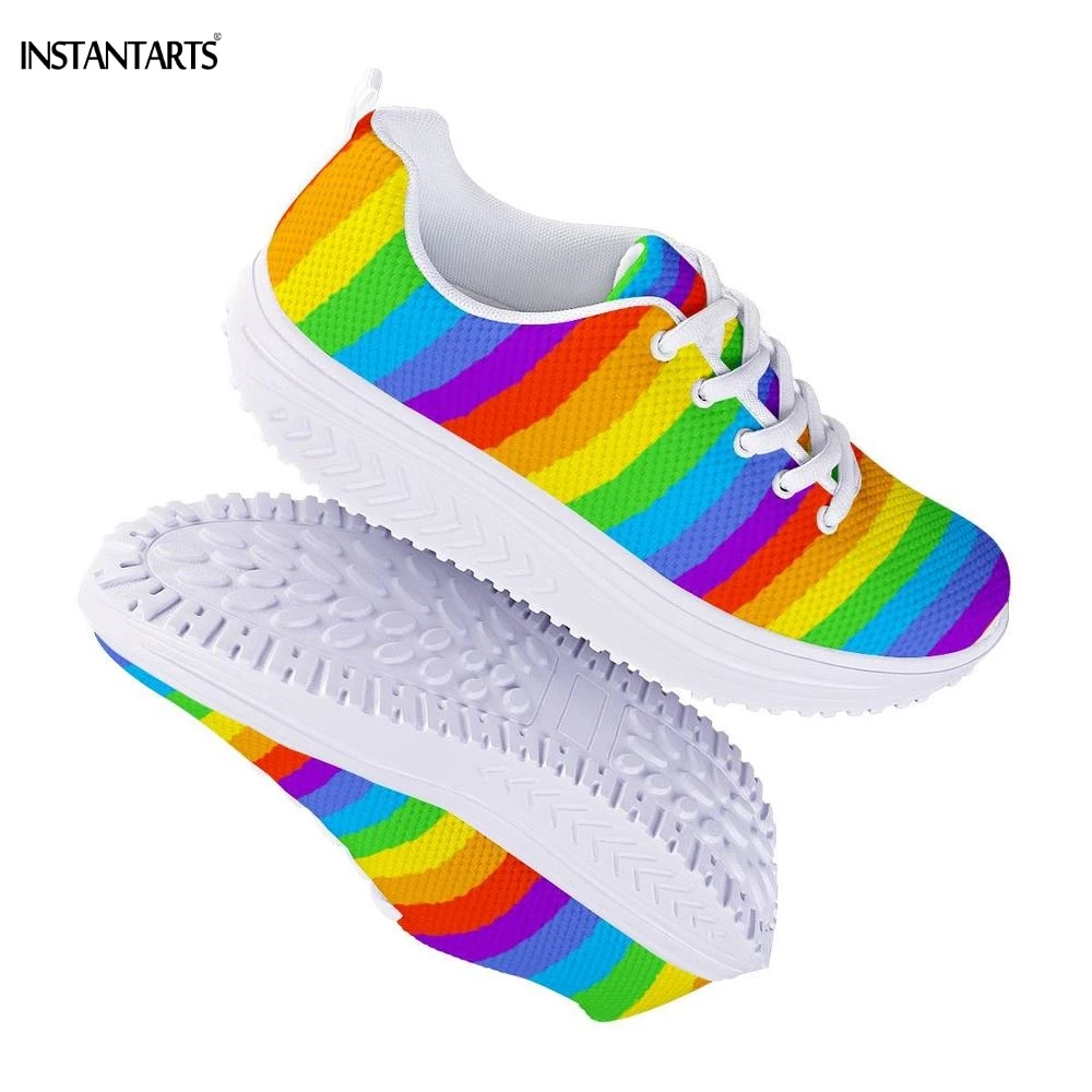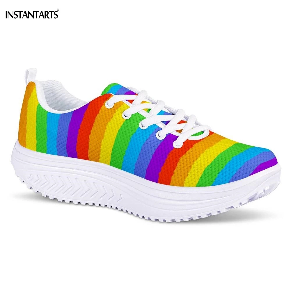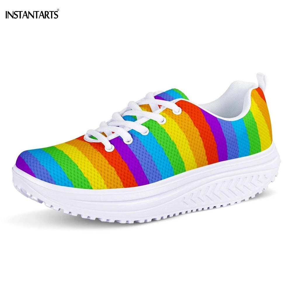 INSTANTARTS Rainbow Flag Pride Pattern Sneakers Women Breath Sports Fitness Swing Shoes Platform Wedge Shoes for Woman Outdoor