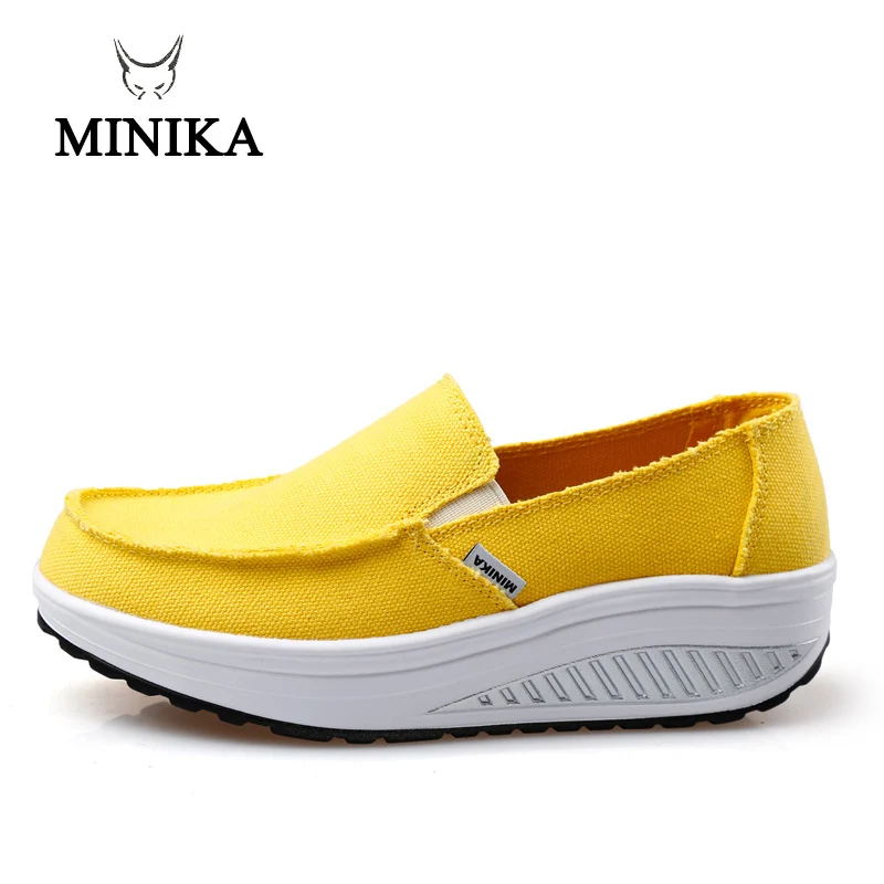 Minika New Summer Women's Shoes Yellow Blue Sport Shoes Walking Flats Height Increasing Women Platform Canvas Swing Wedges Shoe