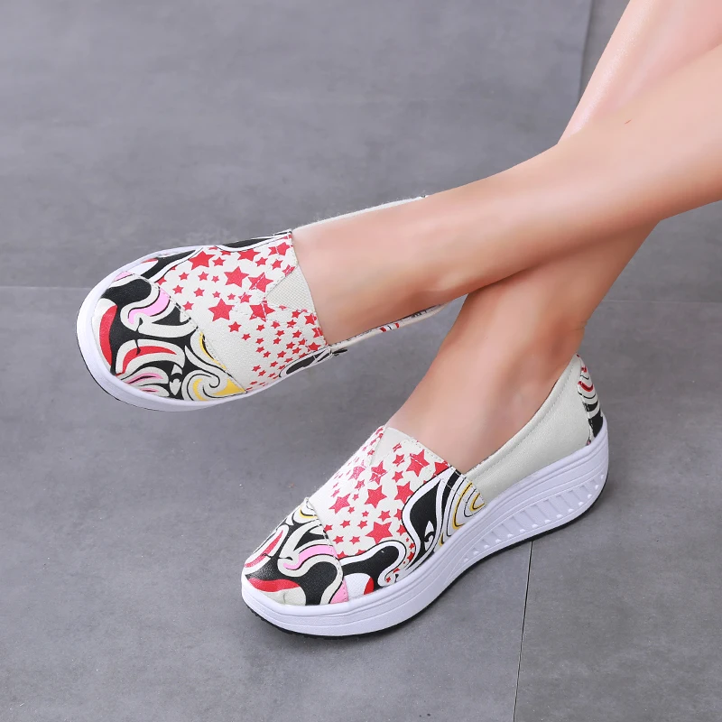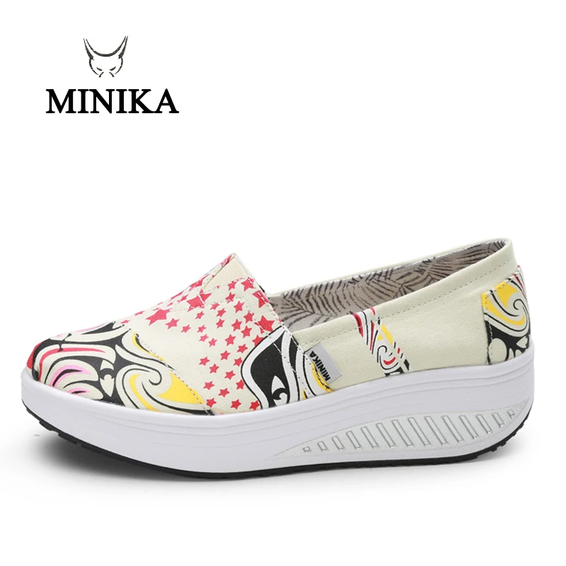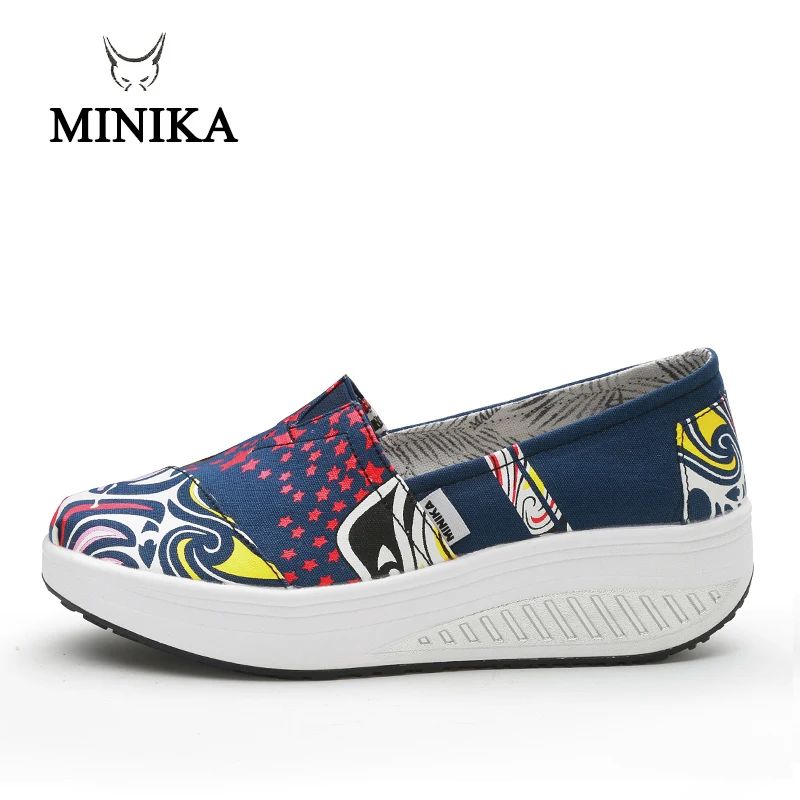MINIKA Canvas Print Women Swing Shoes 2018 New Arrival Height Increasing Shoes Health Slip-On Shoes Comfort Women Toning ShoesBuy Now On Aliexpress