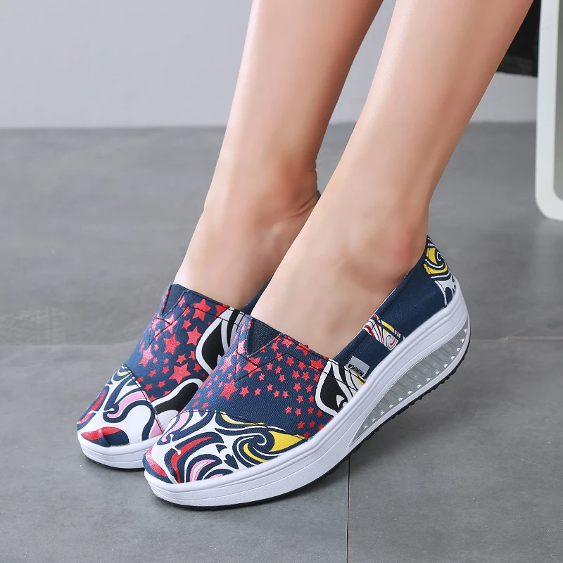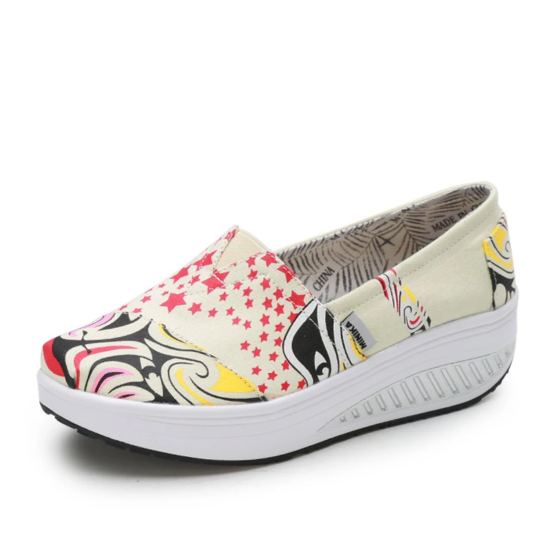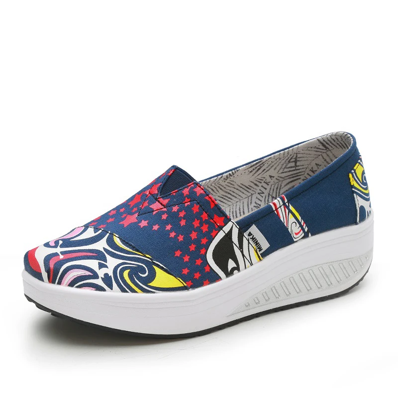 MINIKA Canvas Print Women Swing Shoes 2018 New Arrival Height Increasing Shoes Health Slip-On Shoes Comfort Women Toning Shoes