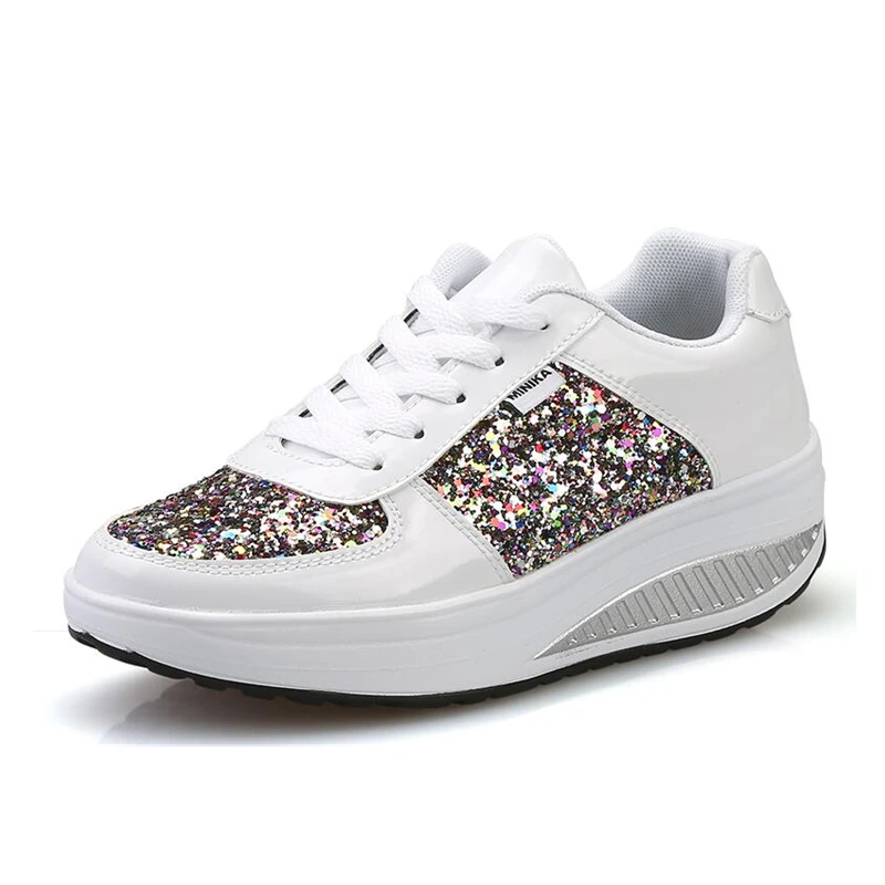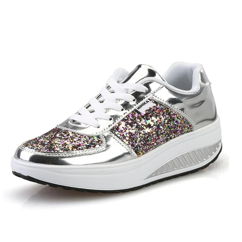 PU Glitter Women Toning Shoes Shining Weight Losing Swing Shoes Thick Soles Height Increasing Women Sneakers