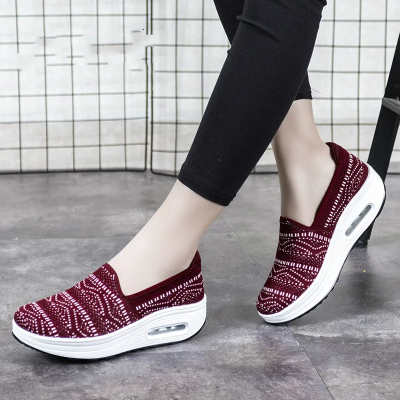 Spring Autumn Women Shoes Air Cushion Breathable Mesh Rocking Shoes Soft Slip On Wedge Platform Sneakers Heighten Slimming ShoesBuy Now On Aliexpress