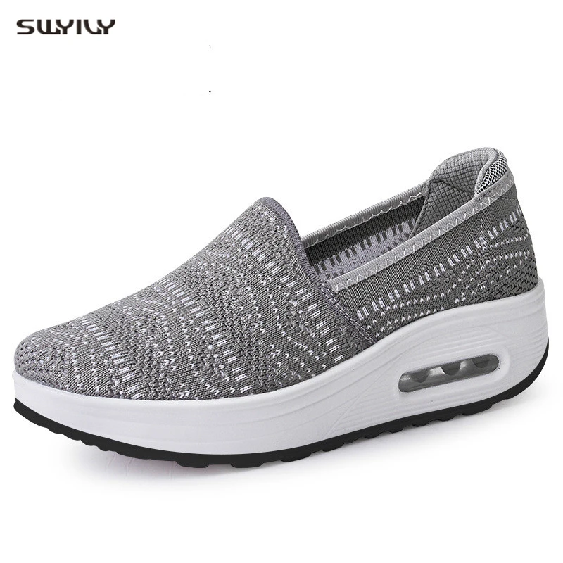 SWYIVY Autumn Shoes Women Wedge Swing Sneakers Slip On Sport Toning Shoes Slimming 2019 New Fashion Female Sneakers On Platform