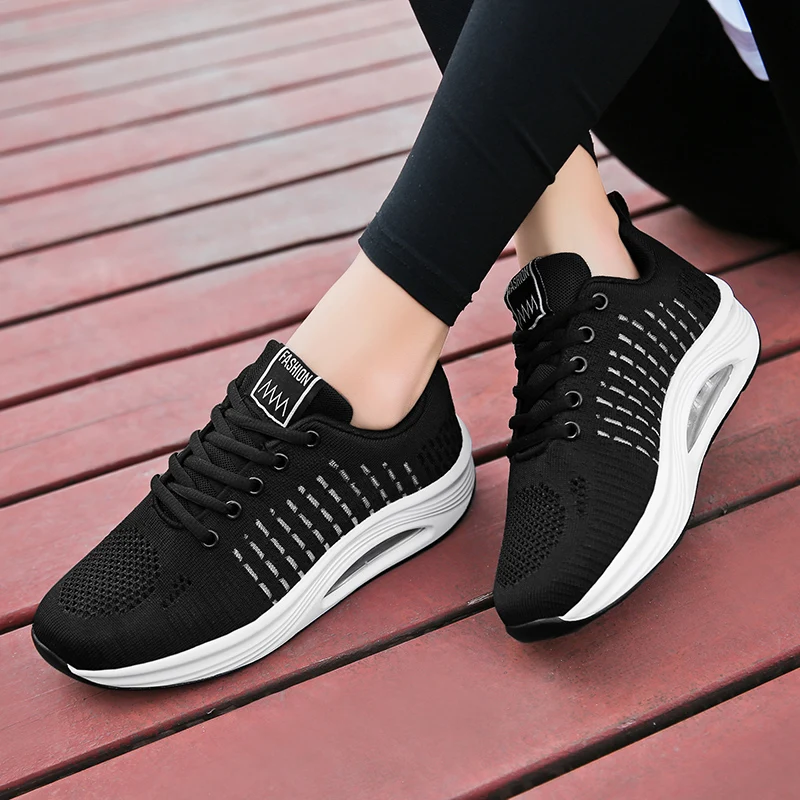 Air Cushion Wedge Sneakers Women Thick Bottom Summer Swing Shoes Breathable Rocking Shoes Soft Height Increasing Jumping ShoesBuy Now On Aliexpress