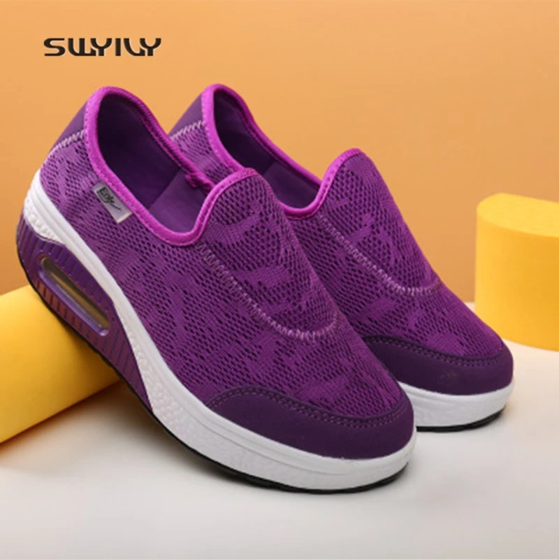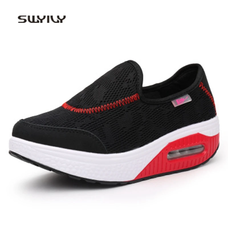 SWYIVY Slimming Women Shoes Lose Weight Woven Sneakers Platform 2019 New Feminino Colorful Light Comfortable Swing Sneakers Shoe