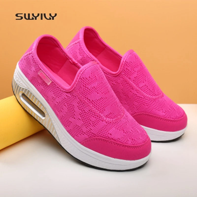 SWYIVY Women Toning Shoes Mesh Breathable Swing Shoes 2018 New Hollow Heel Ultra-light Slip-on Female Slimming Shoes Lose Weight