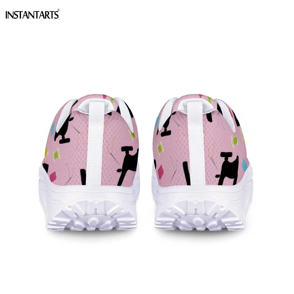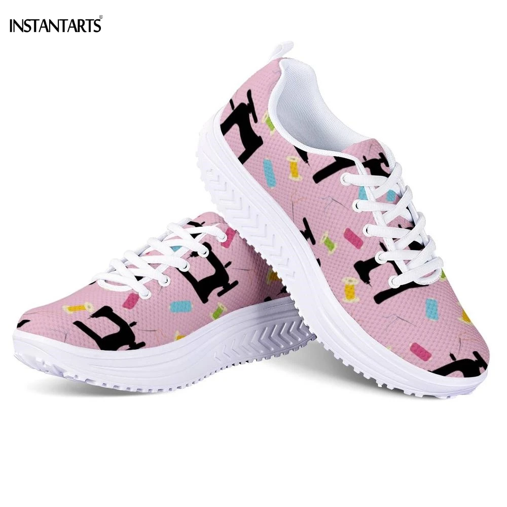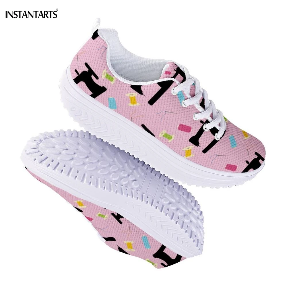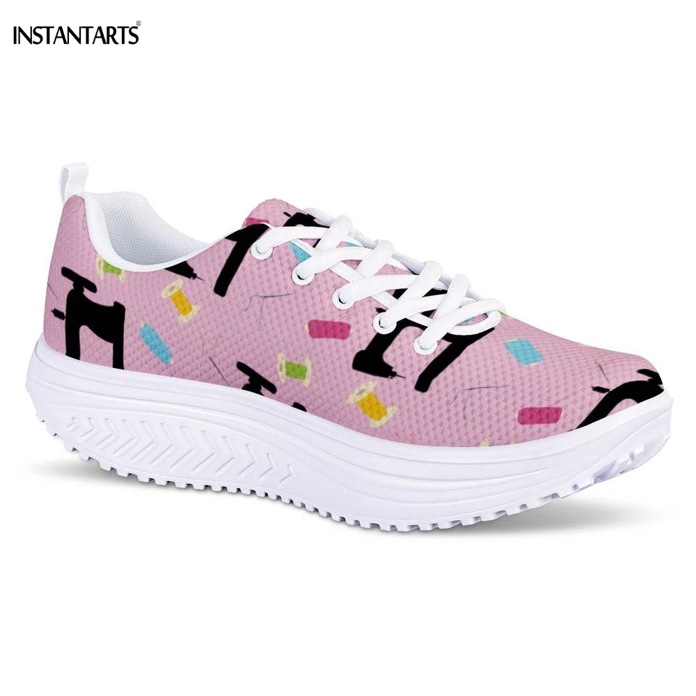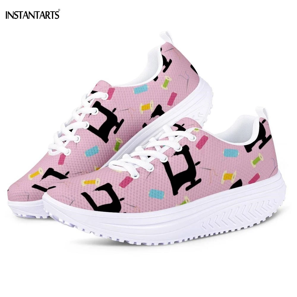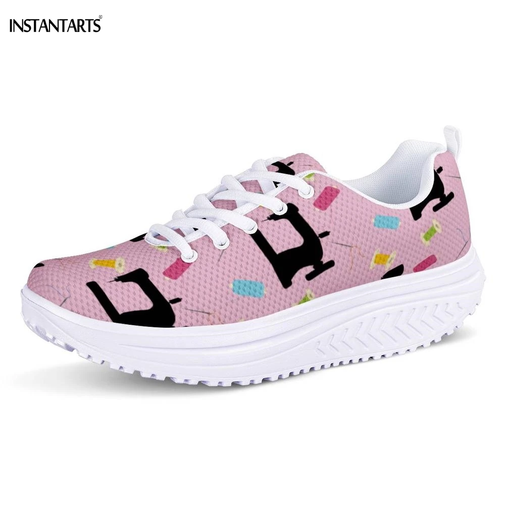 INSTANTARTS Breath Women Outdoor Fitness Shoes Sewing Machine Pattern Pink Female Platform Wedge Shoes Sports Shaping Shoes Lady