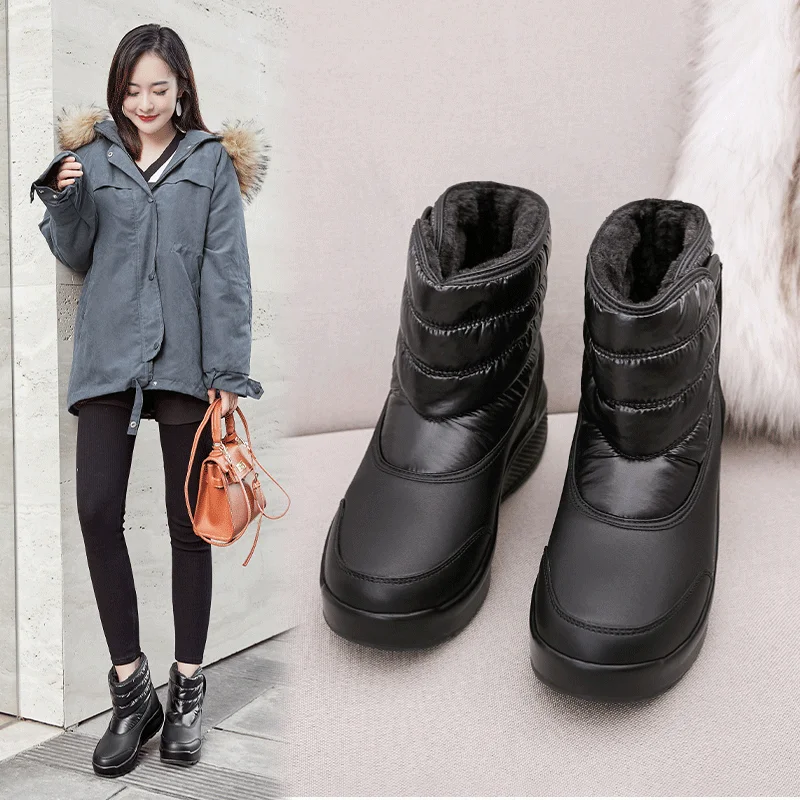 JIANBUDAN Waterproof snow boots Women's wedge casual plush Rain boots Winter warm women's shoes Big size 35-42 ankle bootsBuy Now On Aliexpress