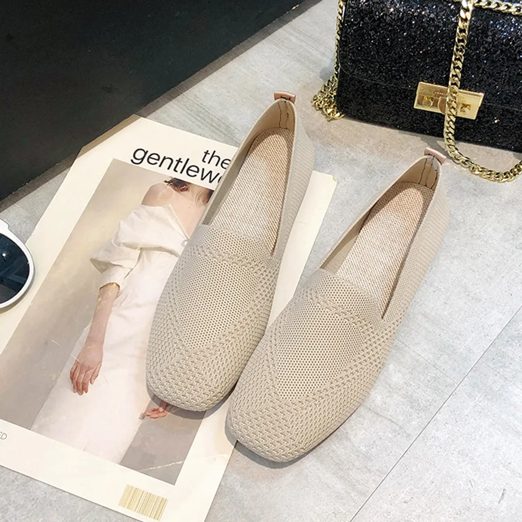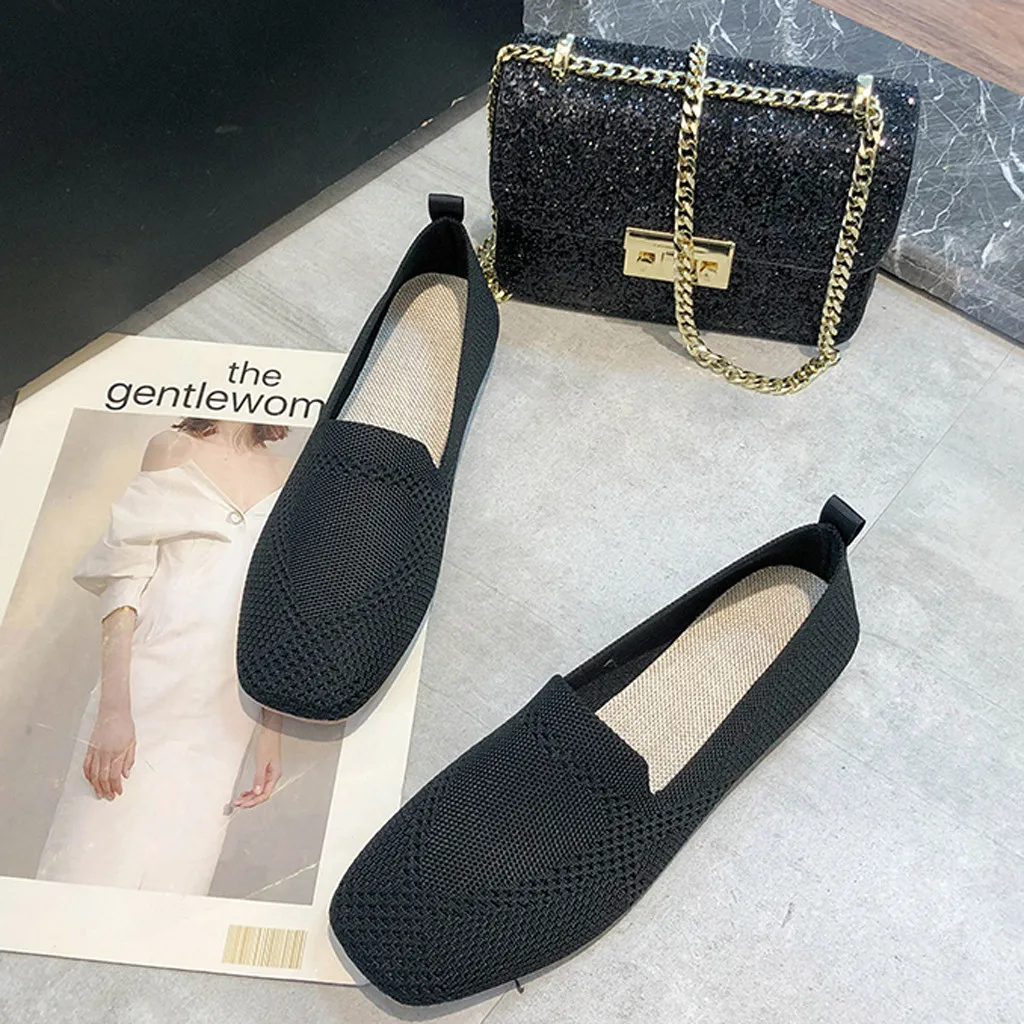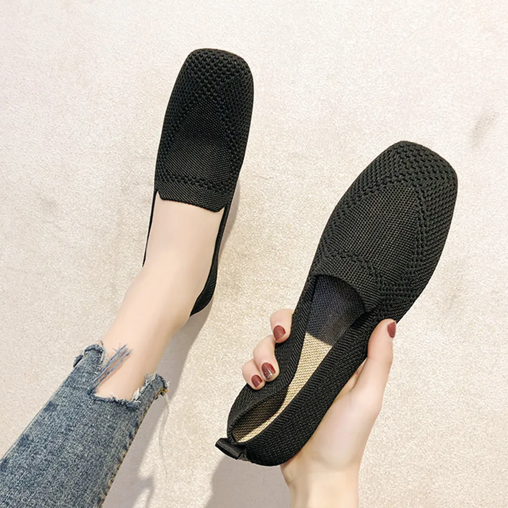 Women's Tender Toning Sneakers Flat Knitting Autumn Mesh Shoes 2019 New Ladies Slip On Breathable Footwear