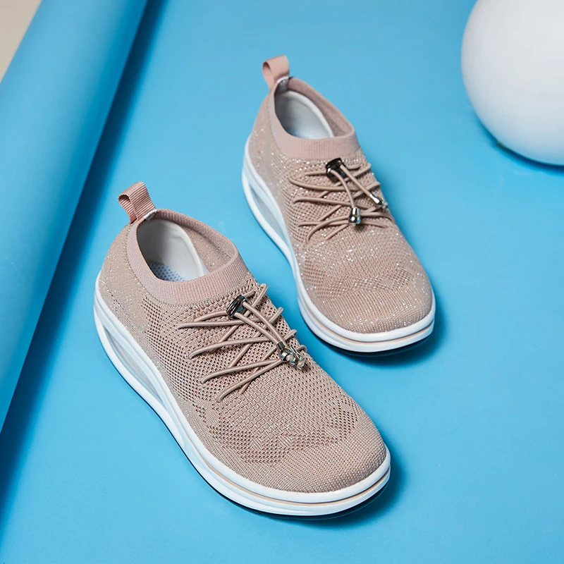 Minika Women Slimming Shoes Fly Wire Air Slip-on Sneakers 2019 New Wedge Height Increasing Female Toning Swing Shoes