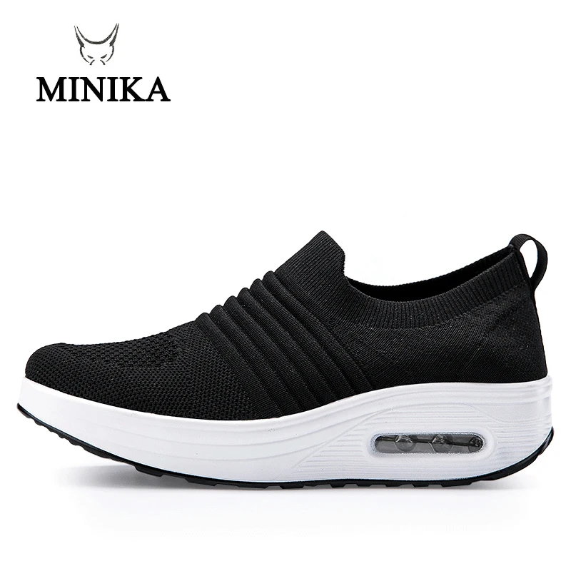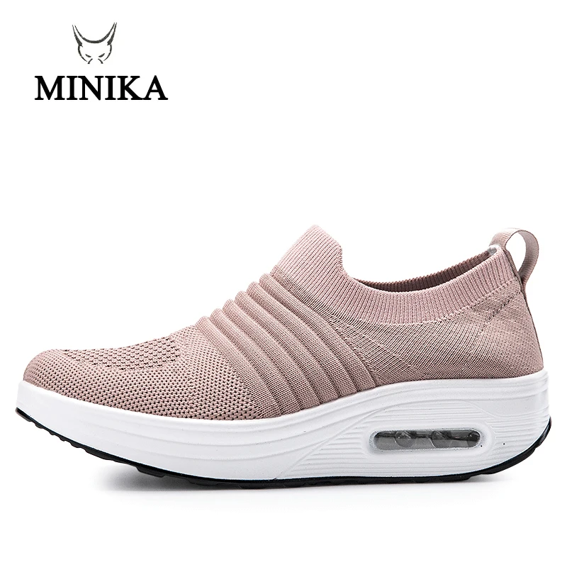 Minika Women Slimming Shoes Fly Wire Air Slip-on Sneakers 2019 New Wedge Height Increasing Female Toning Swing Shoes